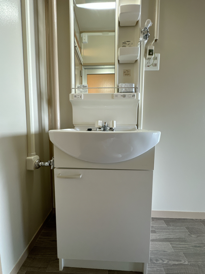 洗面台の位置は残念なところですが、他に置き場はない感じなので仕方ないとも思います。