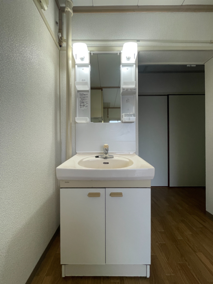 洗面台もキレイで最初からカーテンレールも付いているので用意するものが少なくよかったです