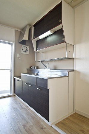 建物自体が古いので、キッチンに昔の給湯器があった場所の備品がそのまま残っていたり、換気扇がレトロな物で残念ですが、キッチンまわりの収納が多いので使い勝手は良いです。
