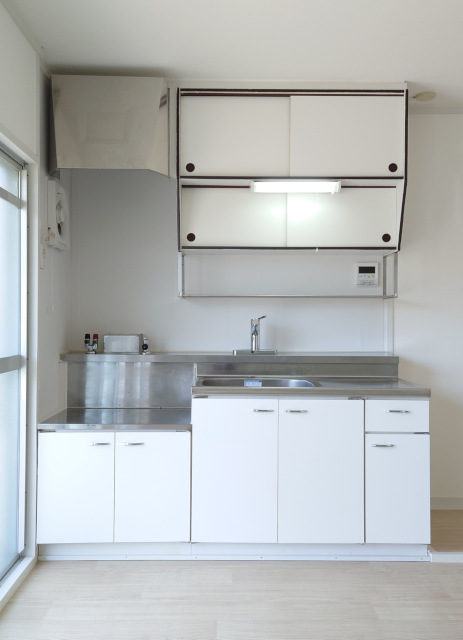 建物自体が古いので、キッチンに昔の給湯器があった場所の備品がそのまま残っていたり、換気扇がレトロな物で残念ですが、キッチンまわりの収納が多いので使い勝手は良いです。