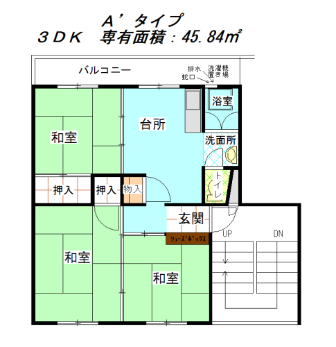 | 間取り | 3DK | 専有面積 | 45.84㎡ |